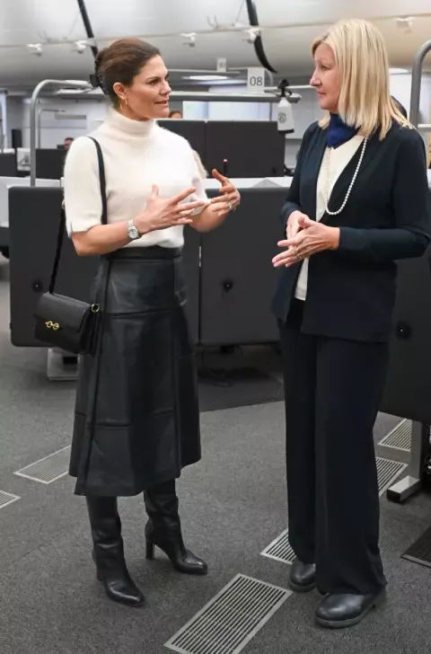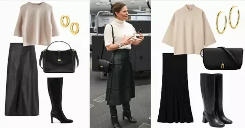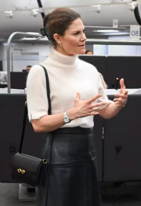 Při nedávné návštěvě společnosti SOS Alarm ve Stockholmu, kam princezna dorazila společně s princem Danielem, zvolila sestavu, která mě opravdu zaujala – kombinace elegance, rafinovanosti a moderního přístupu, která v Česku jednoznačně boduje. Victoria sázela na černou koženou midi sukni, světlý krátký pletený svetr a vysoké kožené kozačky. Zvolená barevná paleta, černá s krémově bílou, je mimořádně univerzální – vypadá čistě, luxusně a zároveň se neokouká. Kombinace černé sukně s vysokými kozačkami působí odvážně, ale měkký, světlý svetr vše krásně zjemňuje. Celkový look dotvářela klasická kožená kabelka a nadčasové šperky.