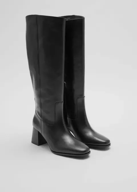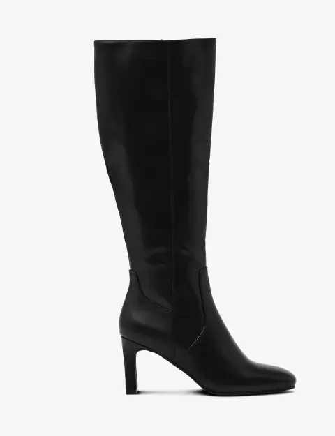 Klasické vysoké kožené kozačky na středně vysokém podpatku – ideální kompromis mezi pohodlím a elegancí. Skvělé i do centra Prahy.