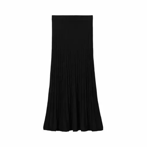 Pletená sukně s jemným áčkovým střihem a těžkým splývavým materiálem – jeden z těch kousků, které oceníte od podzimu do jara.