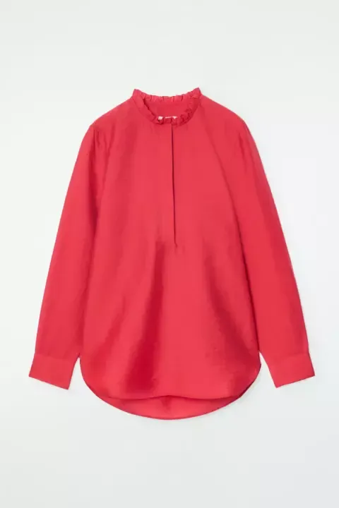 Blůza ve výrazné rtěnkově červené? Přesně! Pokud se nebojíte barev, vyzkoušejte podobný kousek třeba od ZARY nebo v nabídce českých značek jako je LAFORMELA či Odivi.