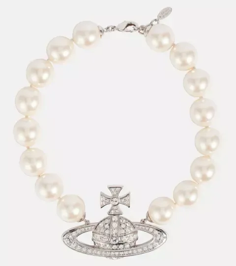 Pearlový náhrdelník z mosazi s krystaly, 4 200 Kč, Vivienne Westwood.