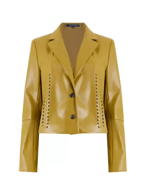 Jestli vám lakované kousky sedí více, zkuste kompletní look – bunda a sukně z polyuretanu ve French Connection (XS–XL, 1 499 Kč, resp. 899 Kč) snadno oživí i jednoduché bílé tričko.
