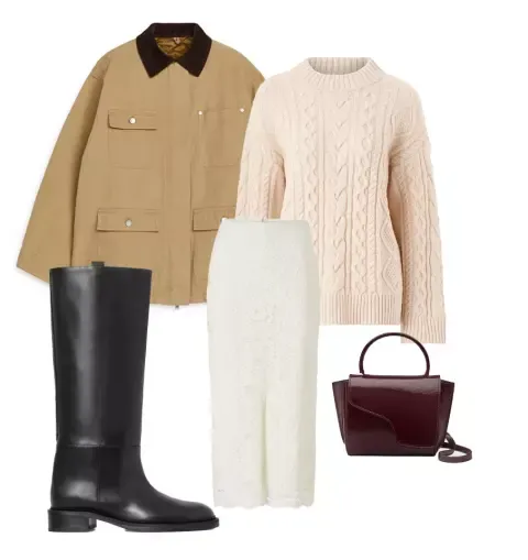 Jednoduchý trik, jak vytvořit zajímavý outfit? Kombinujte různé styly a materiály trochu nečekaně. Tahle sestava spojuje masivní boty a přírodní plátno s jemnou krajkou – kontrast, který funguje překvapivě skvěle!
