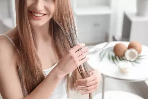 Pokud máte suché nebo krepaté vlasy, kokosový olej je hotový zázrak. V dlaních rozehřejte malé množství a jemně vetřete do konečků – vlasy budou hladší a lesklejší. Dbejte jen na to, abyste oleje nenanášeli příliš – vlasy by pak působily příliš mastně.