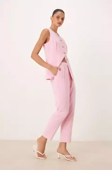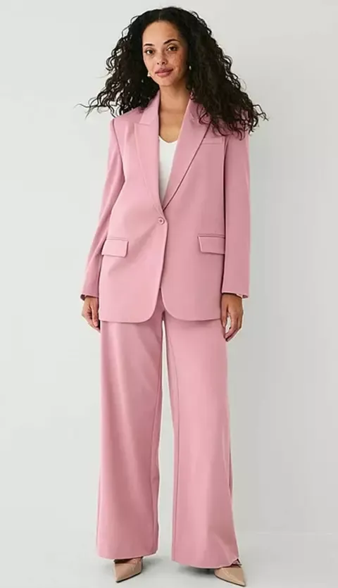 Pastílkovo růžová, nadčasový střih a volné nohavice – právě takovou kombinaci nabízí Ellos. Sako i kalhoty se dají dobře kombinovat i zvlášť, což potvrzuji z vlastní zkušenosti. ANNONS Sako koupíte zde, kalhoty tady.