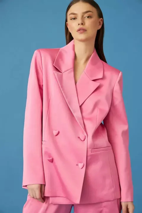 Pokud vás baví hravé detaily, zvolte růžové sako z Crās. Dvojřadé zapínání, lehce lesklý materiál a srdíčkové knoflíky z něj dělají netradiční volbu na jakoukoli příležitost. ANNONS Pořídit ho můžete zde.