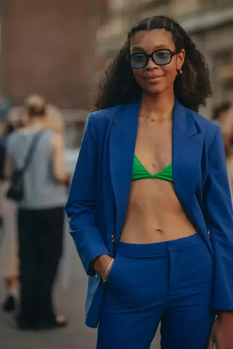 Nebojte se experimentovat – bikini pod sako ocení ženy v každém věku. Vypadá to moderně, osvěží vás to, a přitom nevypadáte, že míříte rovnou na koupaliště.