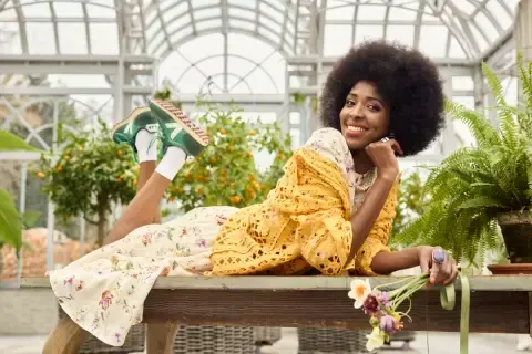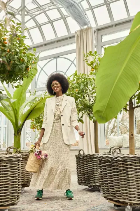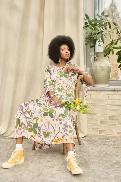 Věděli jste, že česká textilní tradice obsahuje úžasné květinové motivy? Designérky jako Kristen Jobs dělají s květy zázraky. Letos vedou šaty z viskózy s velkými florálními vzory. V kombinaci s ekologickými teniskami uděláte parádu ve městě i v parku Stromovka.