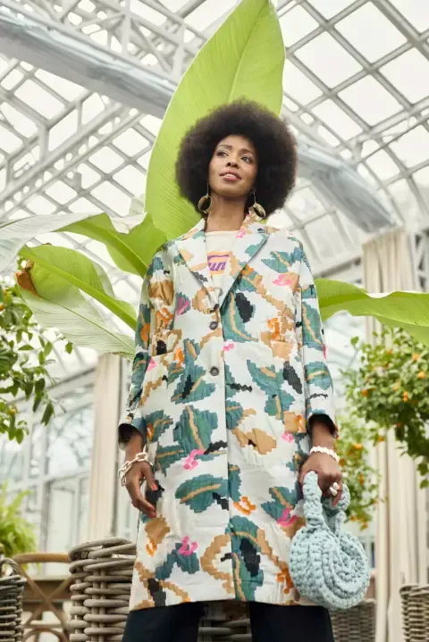 Silné vzory jsou investicí na roky, protože cyklus jejich trendů je pomalejší než u basic kousků. Kabát s dominantním potiskem skvěle oživí jinak jednoduchý outfit. V Česku podobné najdete například u mladých návrhářů v rámci Prague Fashion Week.