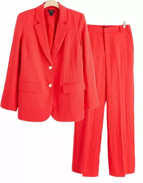 Slušivý dámský kostým je stálicí jarní módy 2025 – a letos platí, že odvážné barvy letí. Sofia Geite nedávno zvolila zářivě červený komplet, kterým rozsvítila vysílání. Skvělá zpráva? Stále ještě můžete tento model koupit!