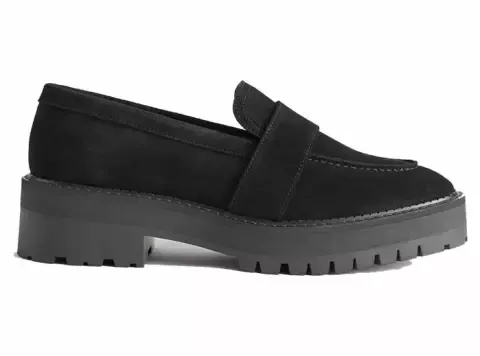 Masivní loafers z broušené kůže s výraznou gumovou podrážkou. Trend, který si získal popularitu i v ulicích Brna nebo Ostravy.