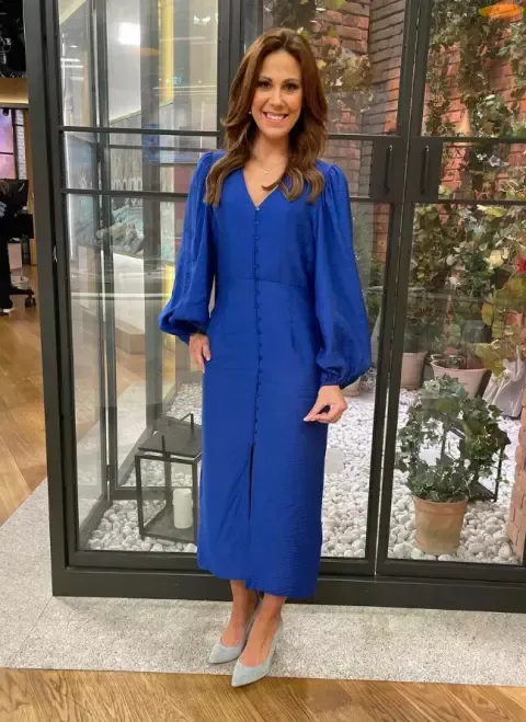 Kobaltově modrá je letos barvou, která zaručeně nevyjde z módy. Sofia Geite ji zvolila ve formě šatů s nabíranými rukávy a věřte, že tento módní kousek můžete sehnat ještě i dnes!