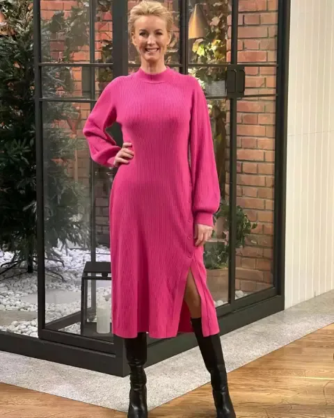 Růžová stále vévodí jarním kolekcím – a Jenny Strömstedt se vrhá do trendů naplno. Nedávno oslnila v úpletových šatech od & Other Stories, které stále najdete v obchodech.
