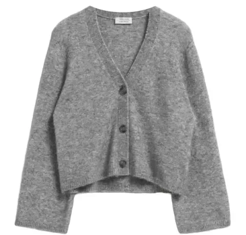 Kardigan v šedé barvě z jemné směsi s alpakou seženete v & Other Stories nebo zkuste některý lokální butik – alpaková vlna perfektně zahřeje při podzimních teplotách a je příjemná na dotek.