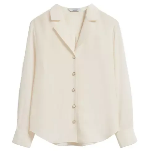 Bílá košile s otevřeným límcem a stylovými knoflíky je základ, který vynosíte celoročně. Podobnou najdete nejen v & Other Stories, ale i v českém Pietro Filipi nebo v Lindexu. Takový kousek skutečně nikdy nevyjde z módy.