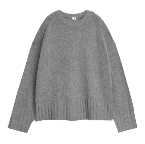 Volně střižený svetr z kvalitní vlny v úžasně univerzálním šedém odstínu, ideální k džínům i sukni.
