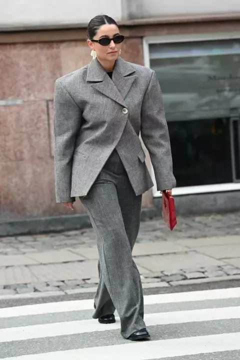 - Kostýmový komplet: Precizně střižený komplet je letos must-have. Najdete ho v různých podobách, od klasické šedé po výrazné vzory, například v kolekcích českých značek jako Pietro Filipi či Blažek.